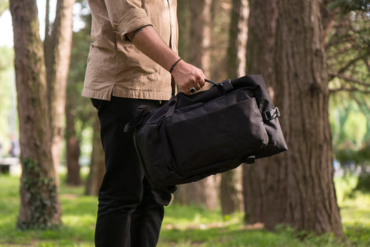 - Roll top construction for expandability and weather protection