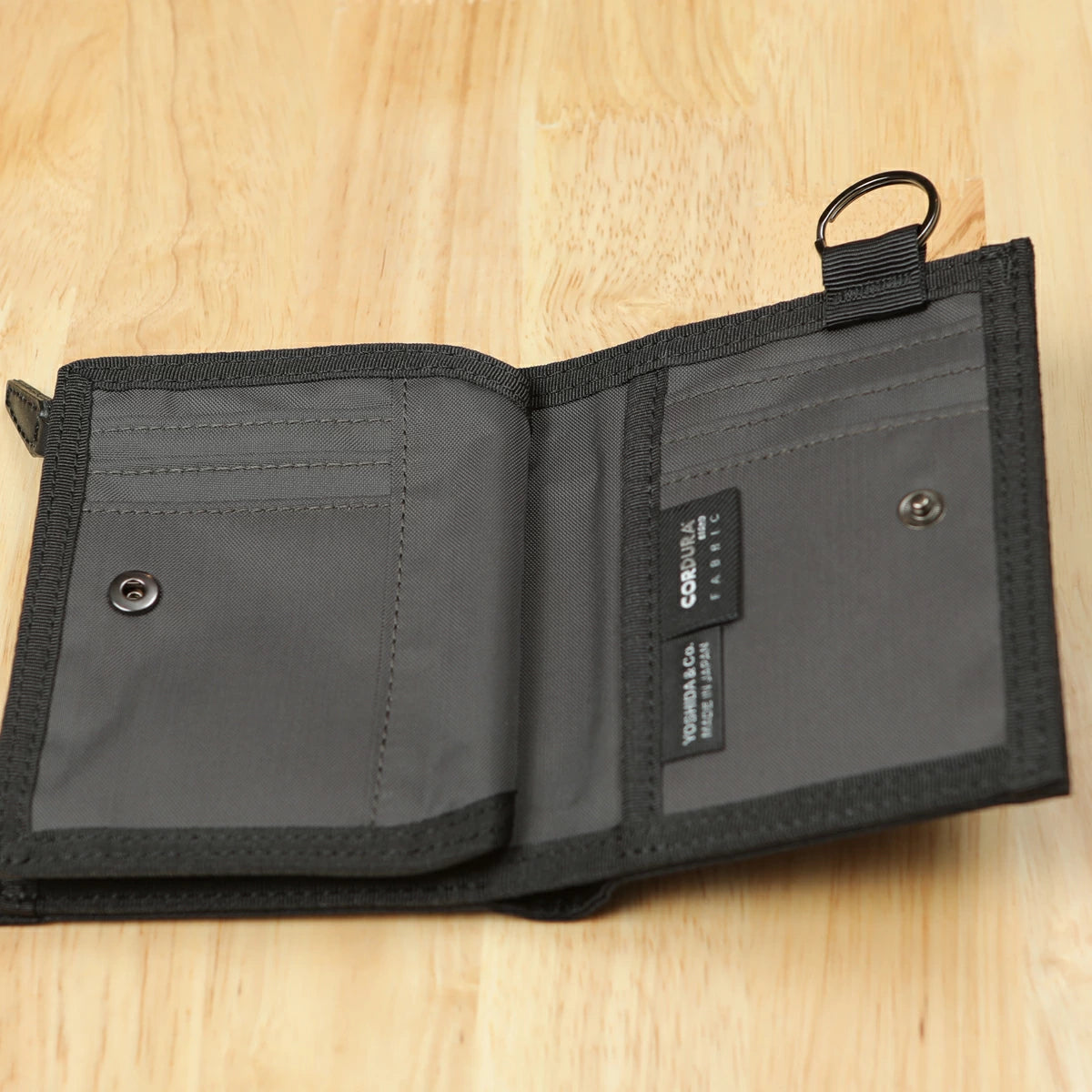 The Porter Dill Small Fold Wallet is a lightweight, compact, and highly functional wallet designed for seamless everyday use. Featuring a durable Cordura® polyester ripstop fabric, it is abrasion-resistant, lightweight, and structured with a signature lattice texture for a refined look. The exterior coin purse with a partitioned L-shaped zipper adds practicality, while the double ring attachment enhances versatility.