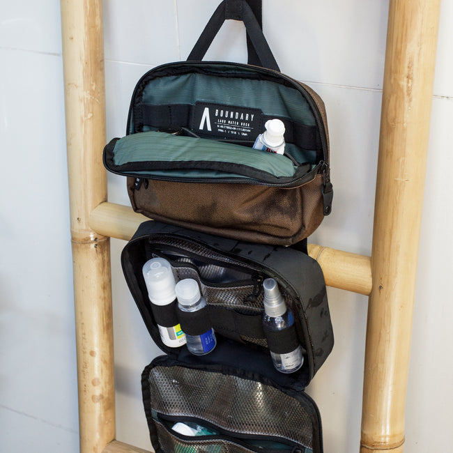 The Port Kitt is designed and built for daily excursions, weekend warriors, or extended travels. One-half compartment holds your tech accessories and dry goods, while its waterproof counterpart holds liquids to protect your travel bags from leaks and spills. With the ability to lay flat in a suitcase or hang in the shower, the Port Kitt is the gym-goer and traveler's best toiletry bag.