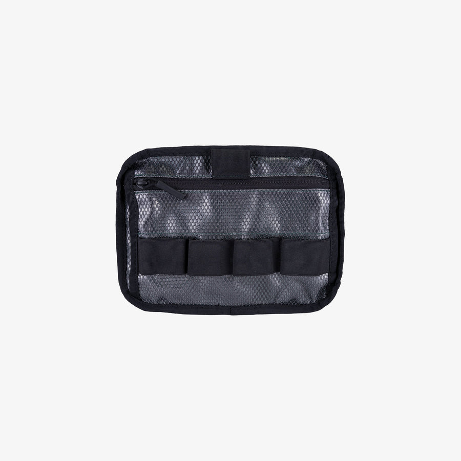 • Stretch-mesh pockets store tech essentials like chargers and mice.