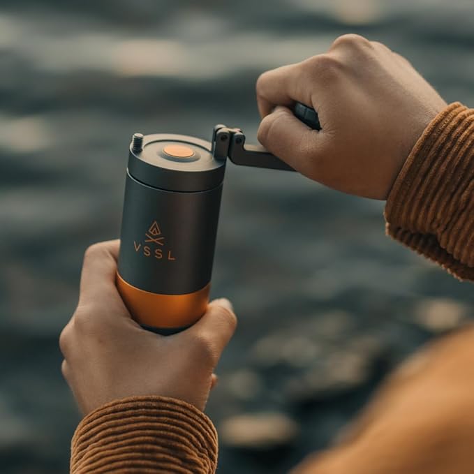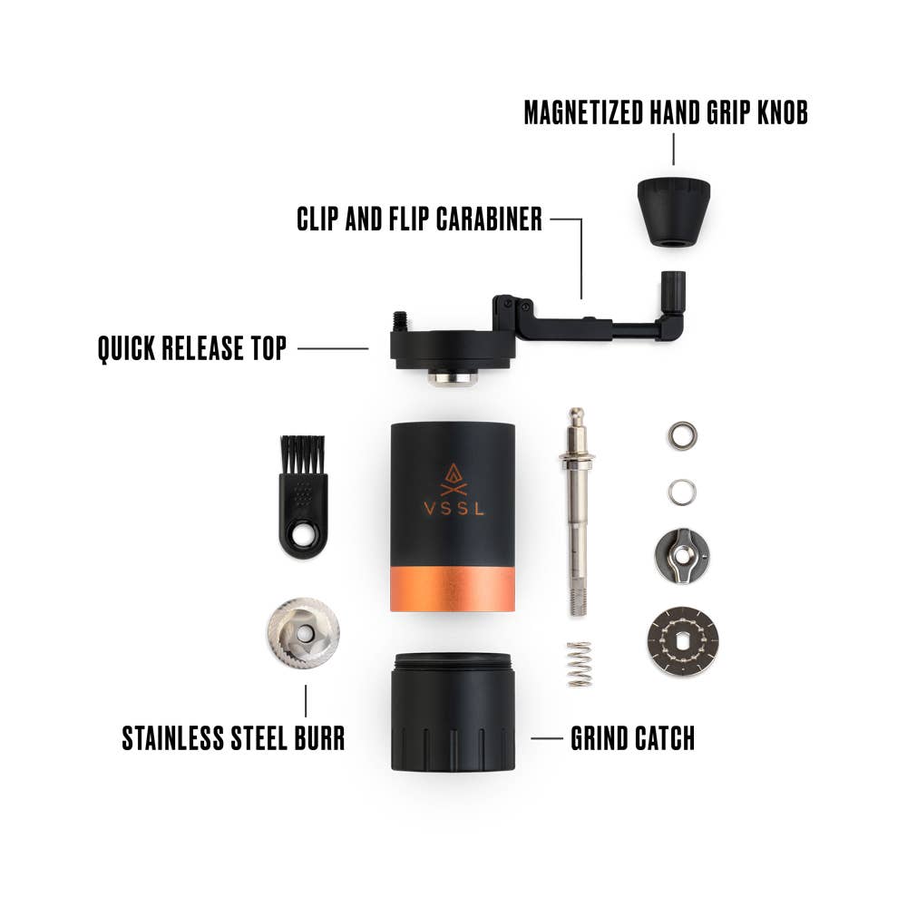 Experience the ultimate hand coffee grinder, crafted from military-grade aluminum and stainless steel for unmatched durability and precision. Designed for adventure, it features a push-release top cap for easy bean access, a retractable handle doubling as a carabiner, and 50-grind settings for perfect consistency. Seamlessly compatible with the Nest Pour Over Kit and AeroPress Go, it’s built for exceptional coffee anywhere.