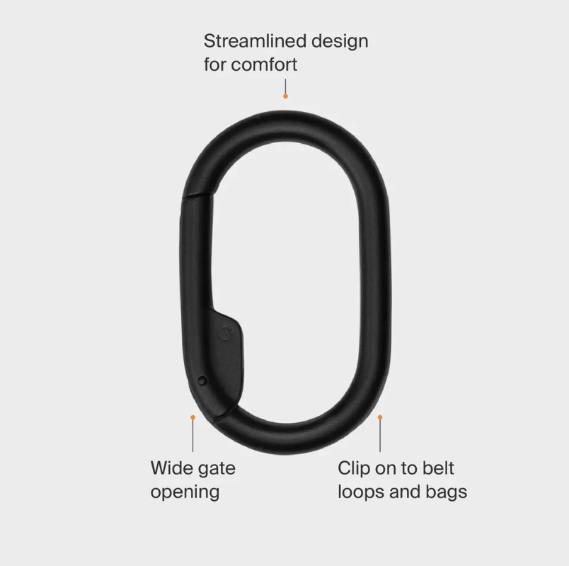 The new and improved Clip has been designed with a smooth and streamlined form for comfortable operation, and a wide gate opening to easily clip on to belt loops and bags.