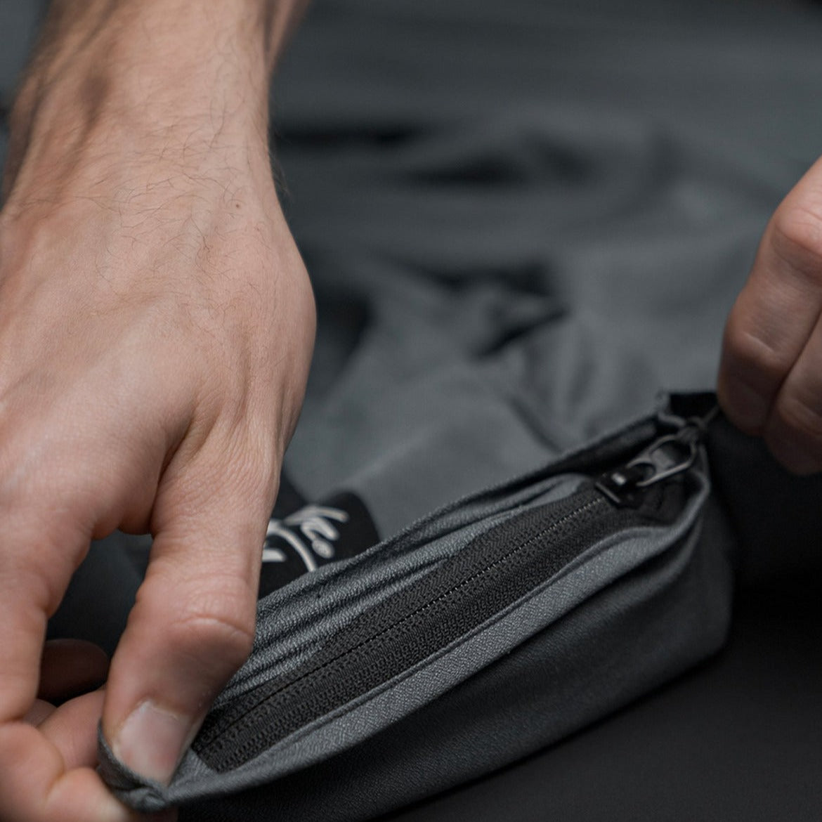- Hidden zipper pocket for keys/phone that inverts into a storage bag