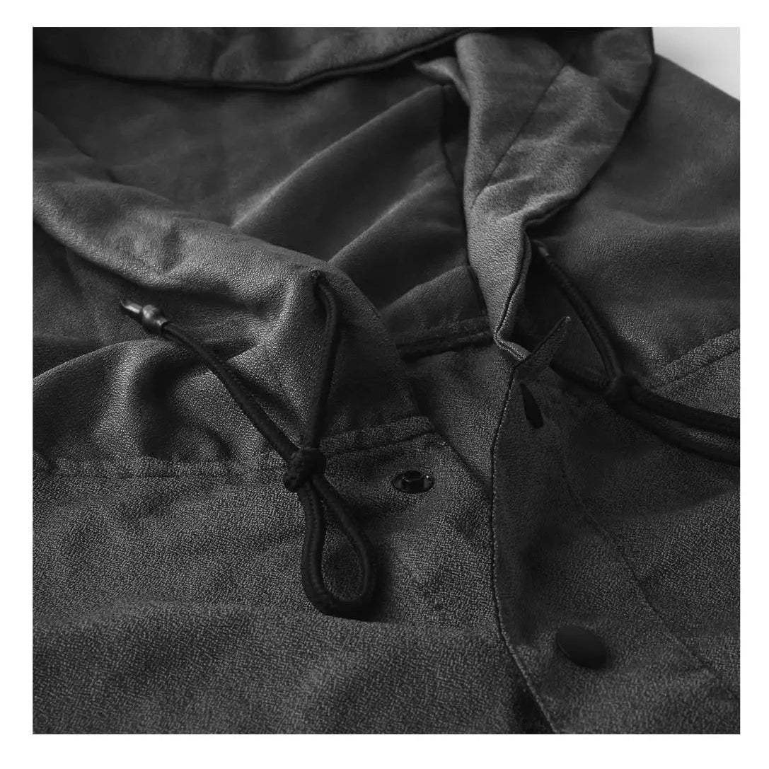 - Hood with drawstring and snap button collar