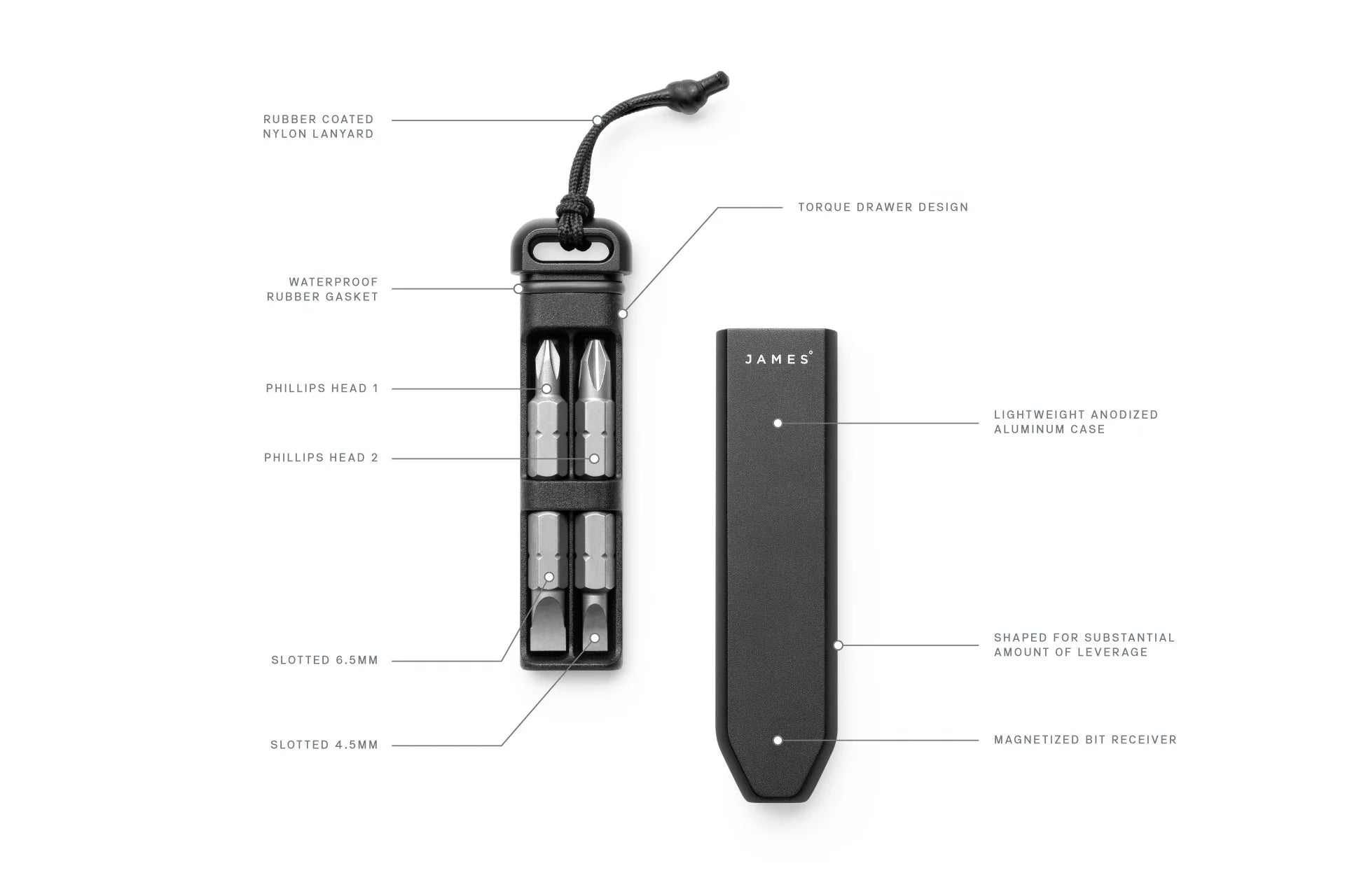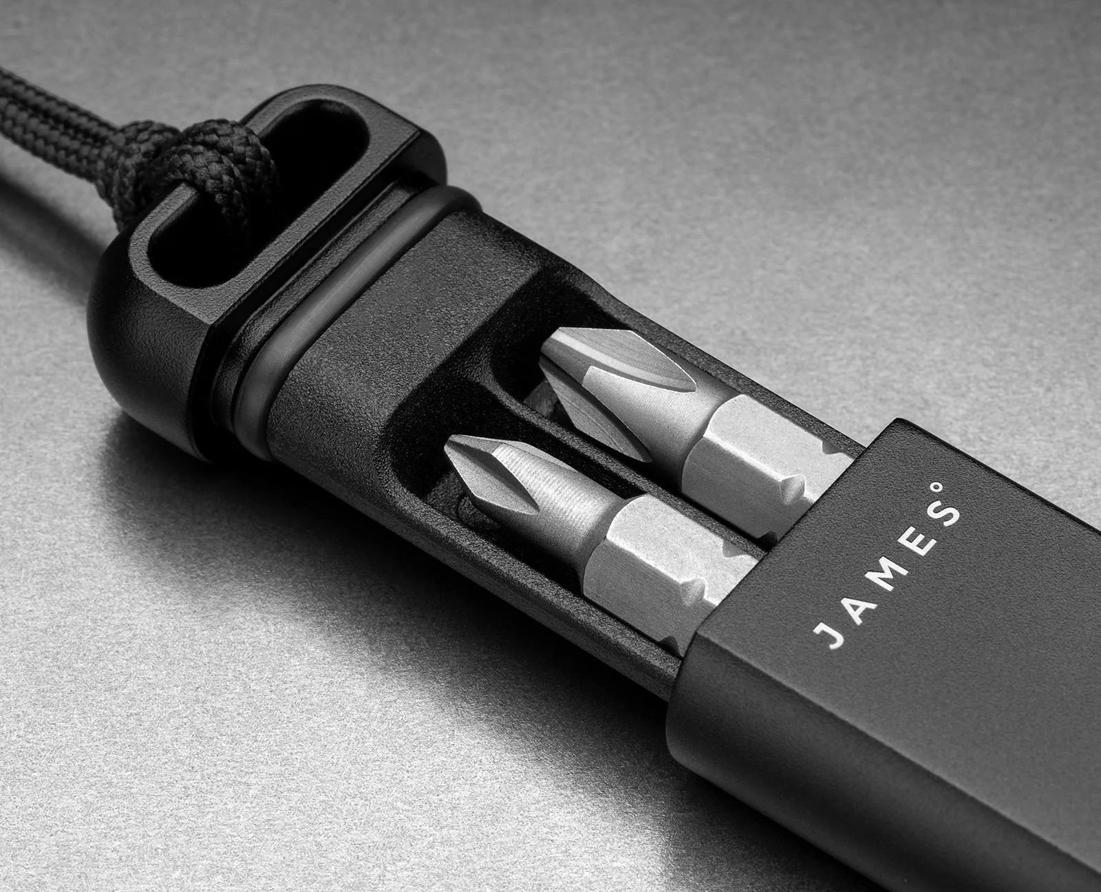 Beyond a blade and a pry, a screwdriver is an essential tool to have on hand. Most screwdrivers or bit drivers need to be more convenient to carry or reliable enough. Enter the Warrick. Compact enough to fit in your coin pocket, it features the four most popular bits. Perfect for tasks from adjusting a camera rig to changing RC car batteries, the Warrick is as functional as it is stylish.