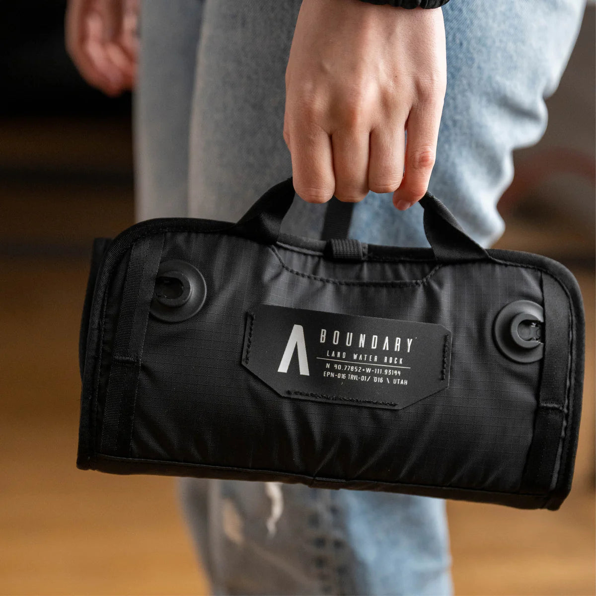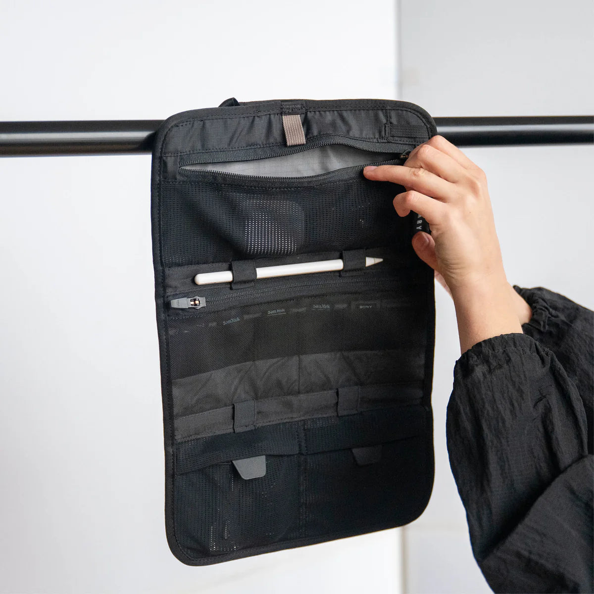 Protect and organize your accessories while on the go. The Tech Roll features five pockets that expand and contract to fit cables, batteries, and other essentials. It also contains six compartments for memory card storage and elastic loops for cable organization. The Tech Roll can be rolled for easy on-the-go carry or attached to any Boundary pack using our magnetic Fidlock system.