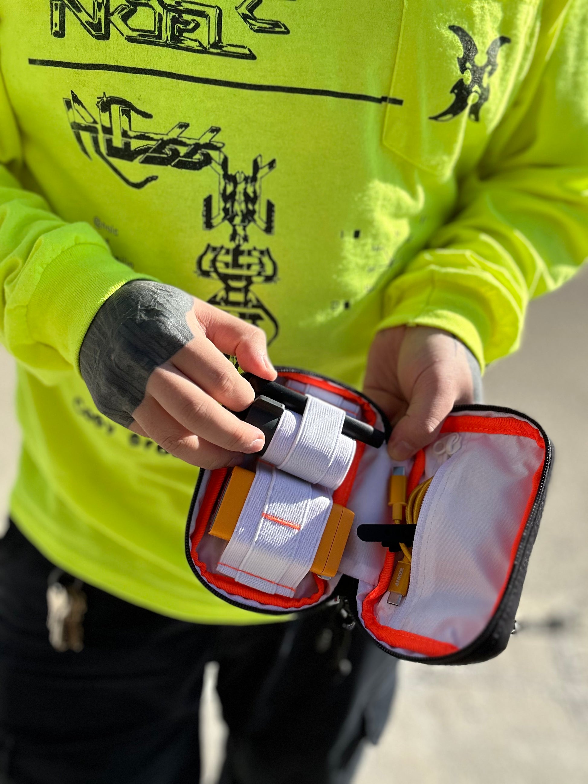 This special version of the Limited Edition Brand's "DayOne" Pouch is designed in collaboration with UrbanCred. Crafted with premium "Konbu" Nylon from Komatsu Seiren in Japan, it features a durable Velcro loop surface on the exterior for customization. The interior showcases a smooth nylon fabric with a removable elastic holder and striking color accents for added style. This versatile pouch blends style and functionality in a compact design, complete with YKK zippers and a custom 3.5" UrbanCred Mecha King Kong Patch.