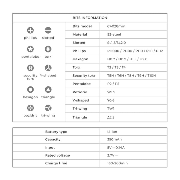 - Built-in magnetizer for bits and screwdrivers