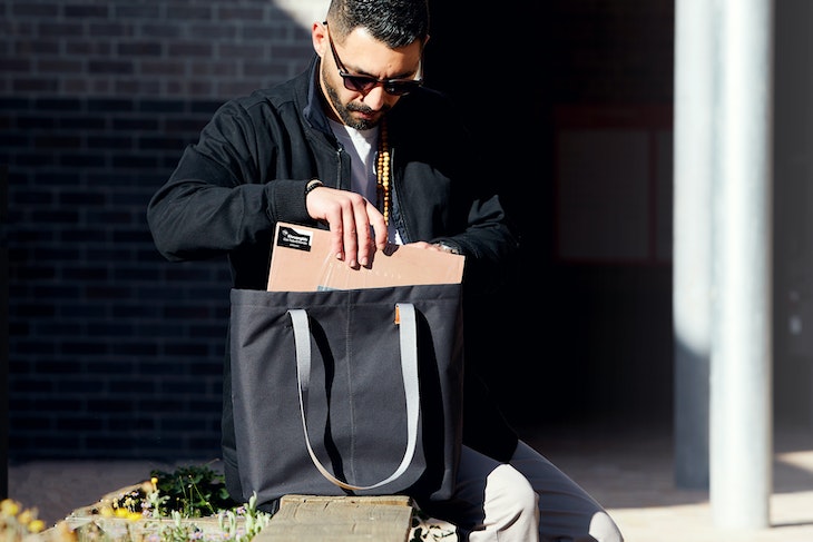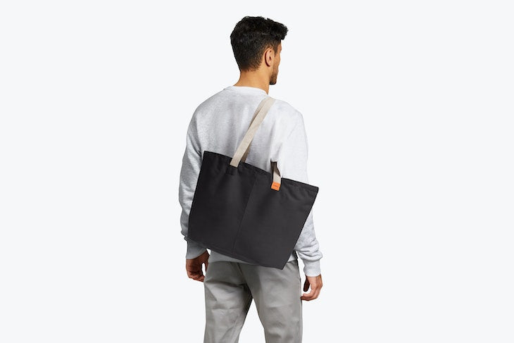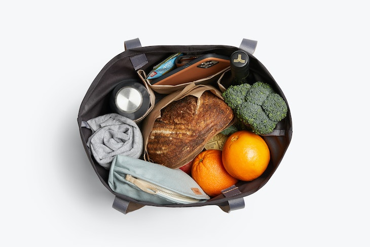 A bottle sleeve on each end keeps your olive oil standing upright, so it doesn’t trample your tomatoes. This tote’s clever folds allow it to stand open and upright, making reaching the towel, wine, or clean diaper easier. Avocados, car keys, sunscreen – keep items that are squishable or easily lost up and above the fray in this handy slip pocket. So long slippage. The extended straps keep this tote comfortably on your shoulder, even with a winter jacket.