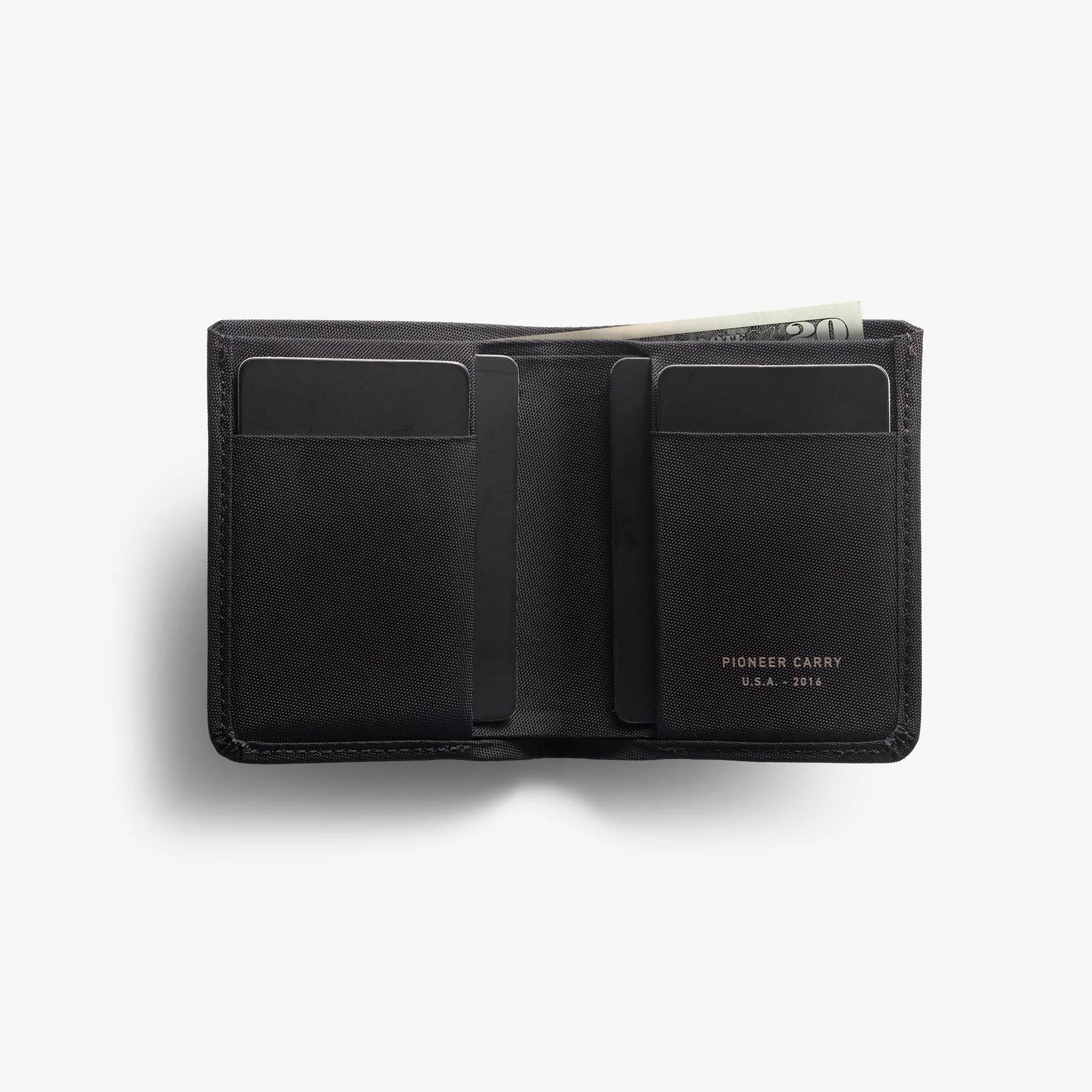 10XD™: Pioneer Carry's proprietary super fabric is ultra-high-molecular-weight-polyethylene yarn (ten times stronger than steel per weight) blended into a fine nylon ripstop. The dense and tactile finish repels dirt and water, keeping your wallet in like-new condition for years.