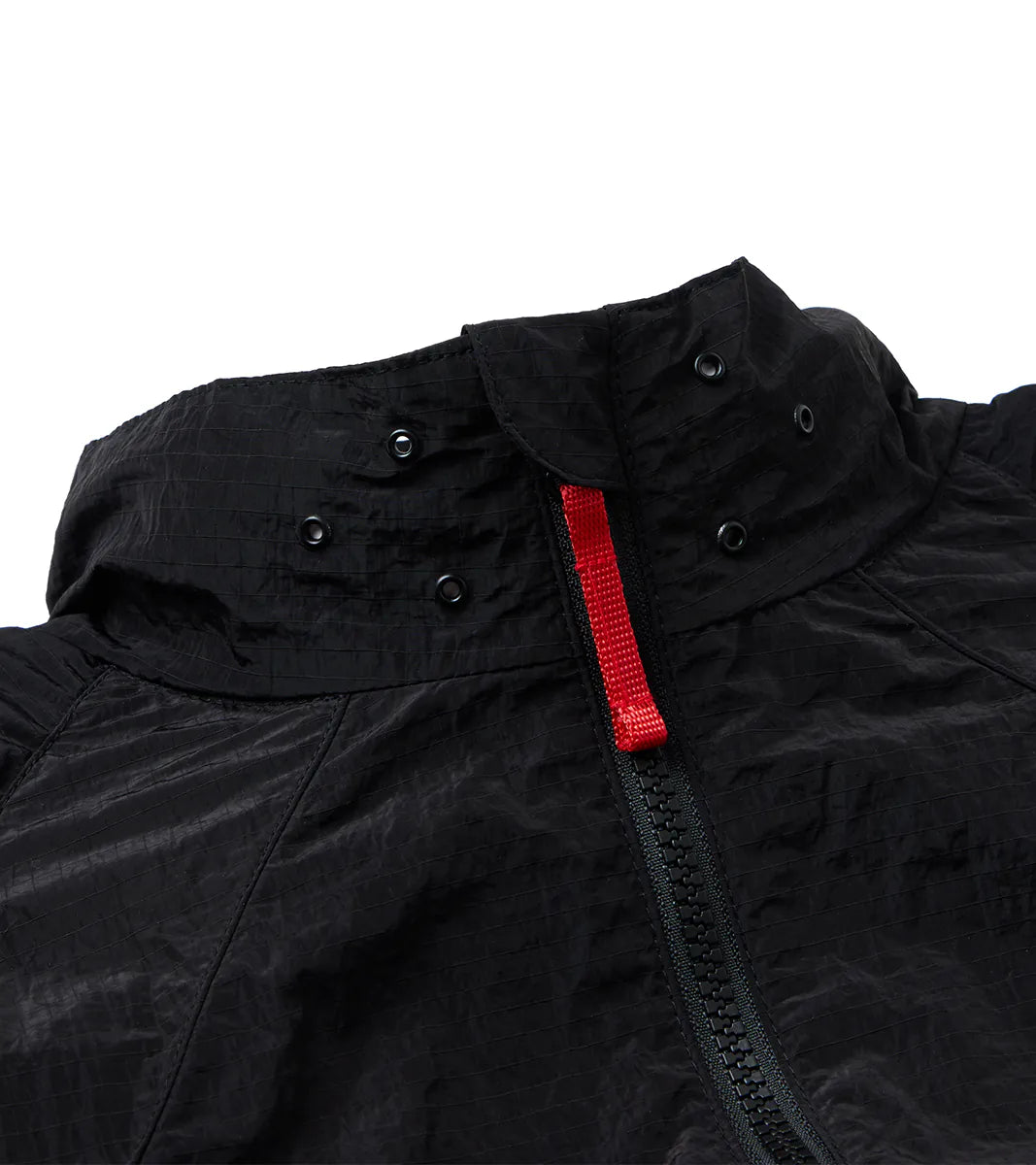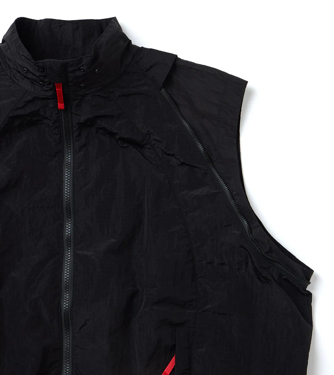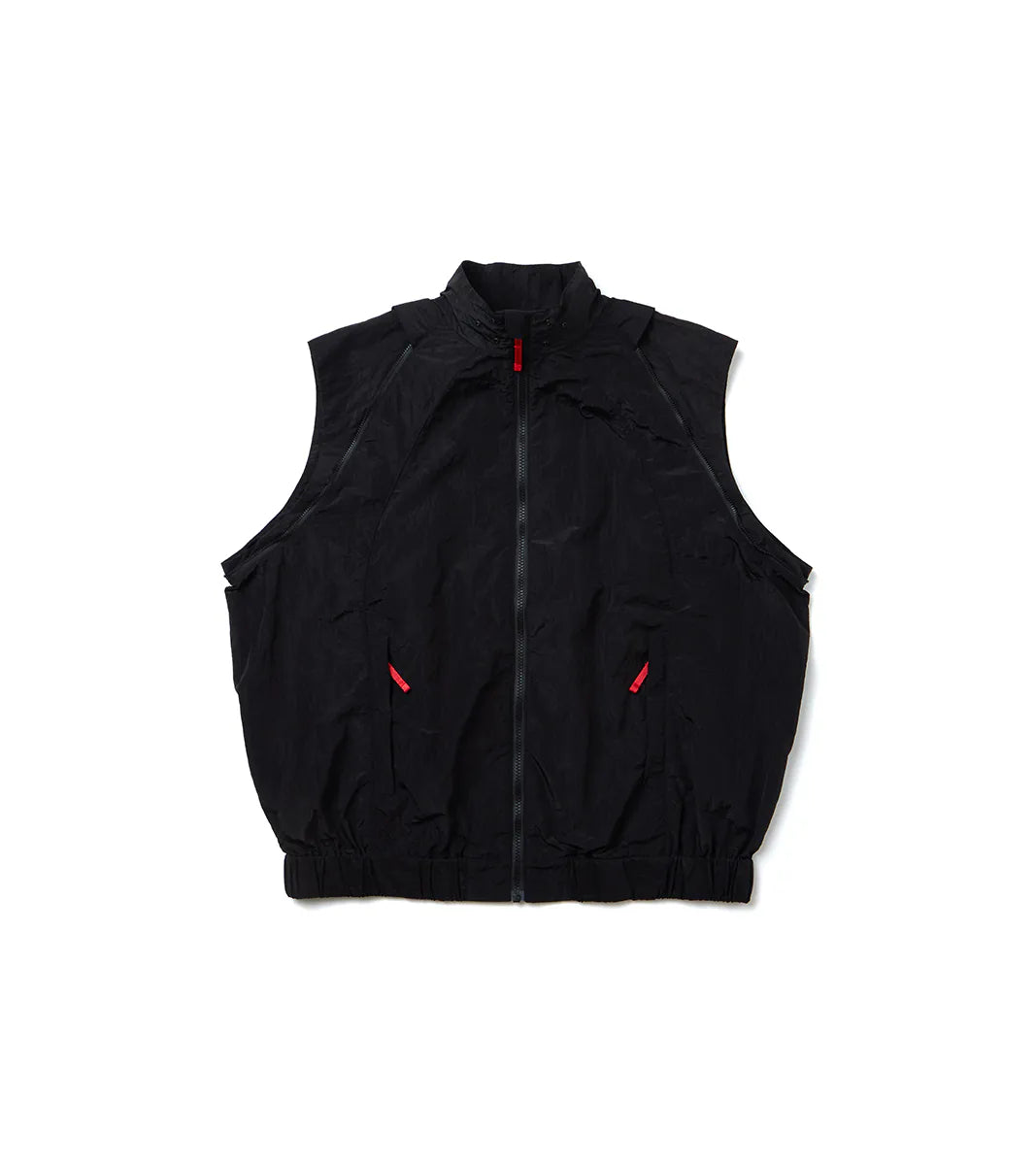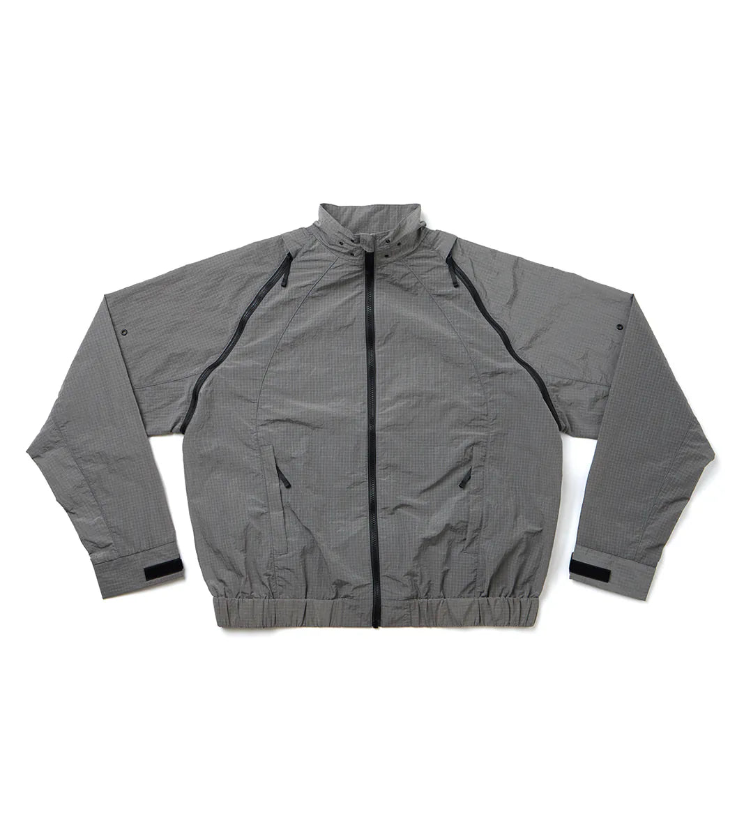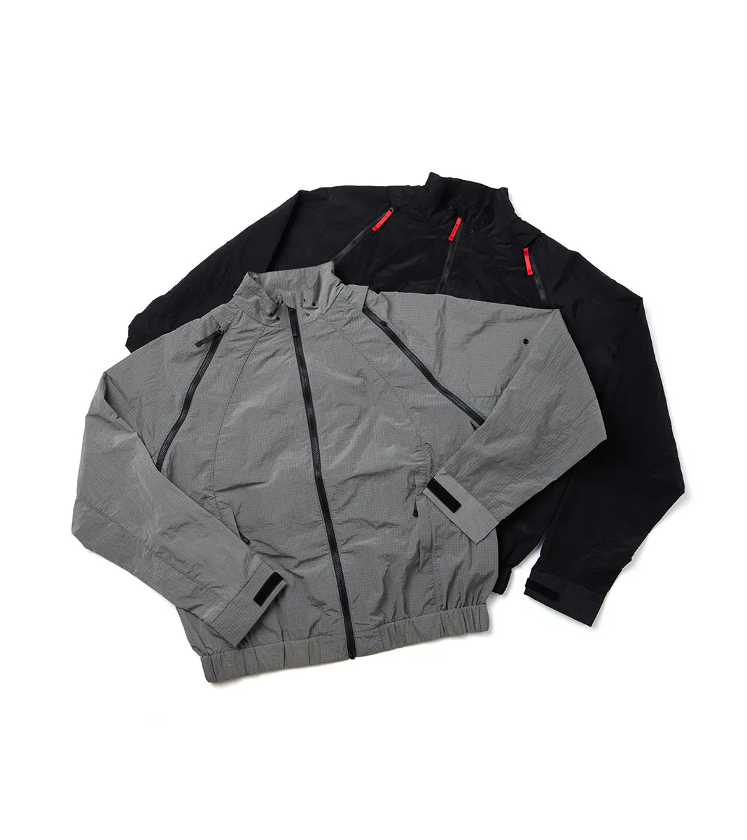 The Detach Shell Jacket by Nozzle Quiz features a sharp and fast silhouette with removable sleeves. Made with rugged zippers, curved lines, breathable vents and tear-resistant grid fabric, the Detach Shell Jacket offers both style and functionality for any season.