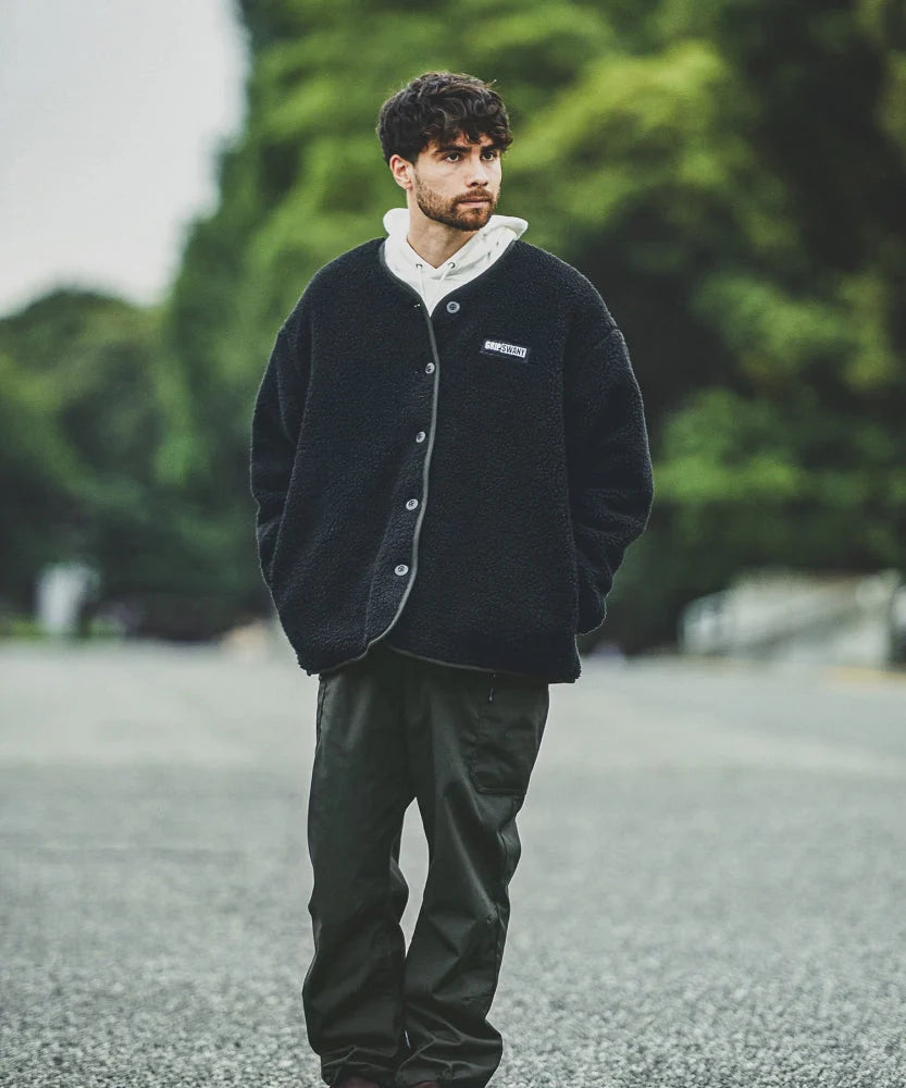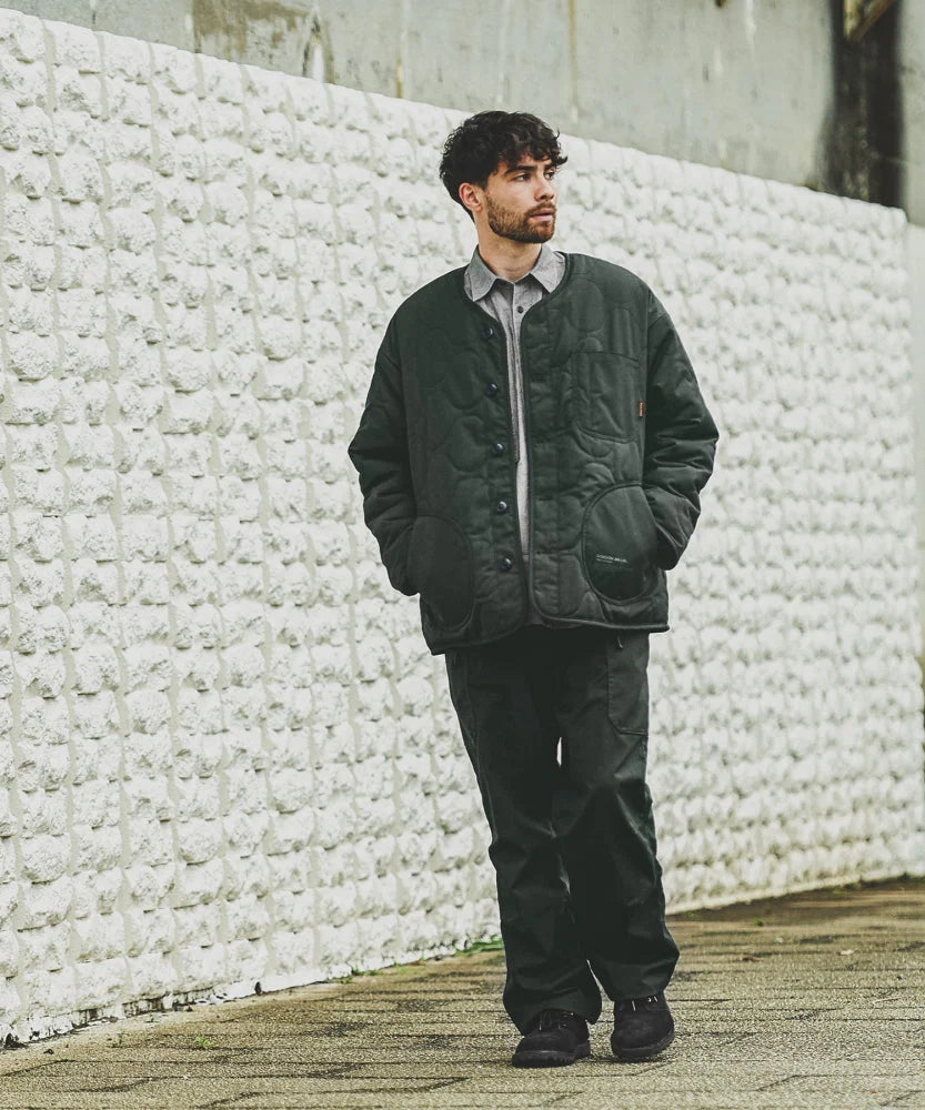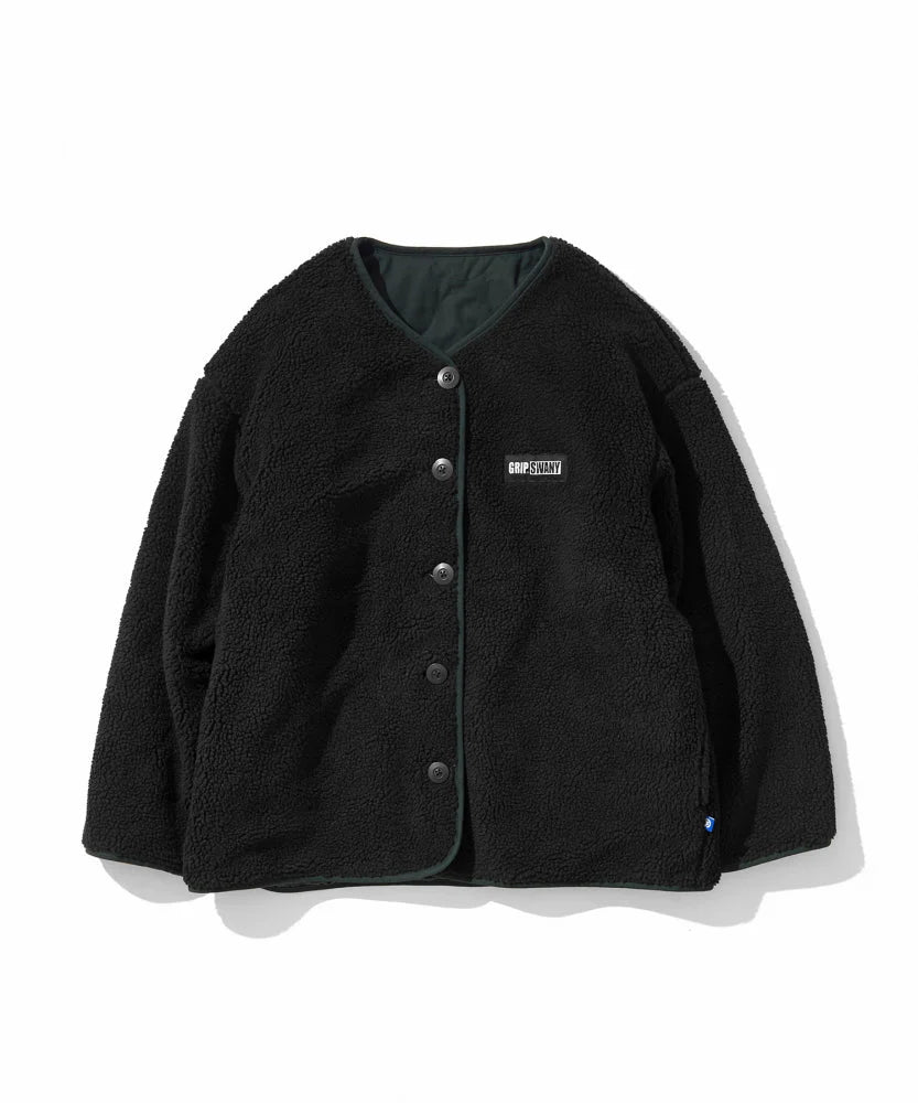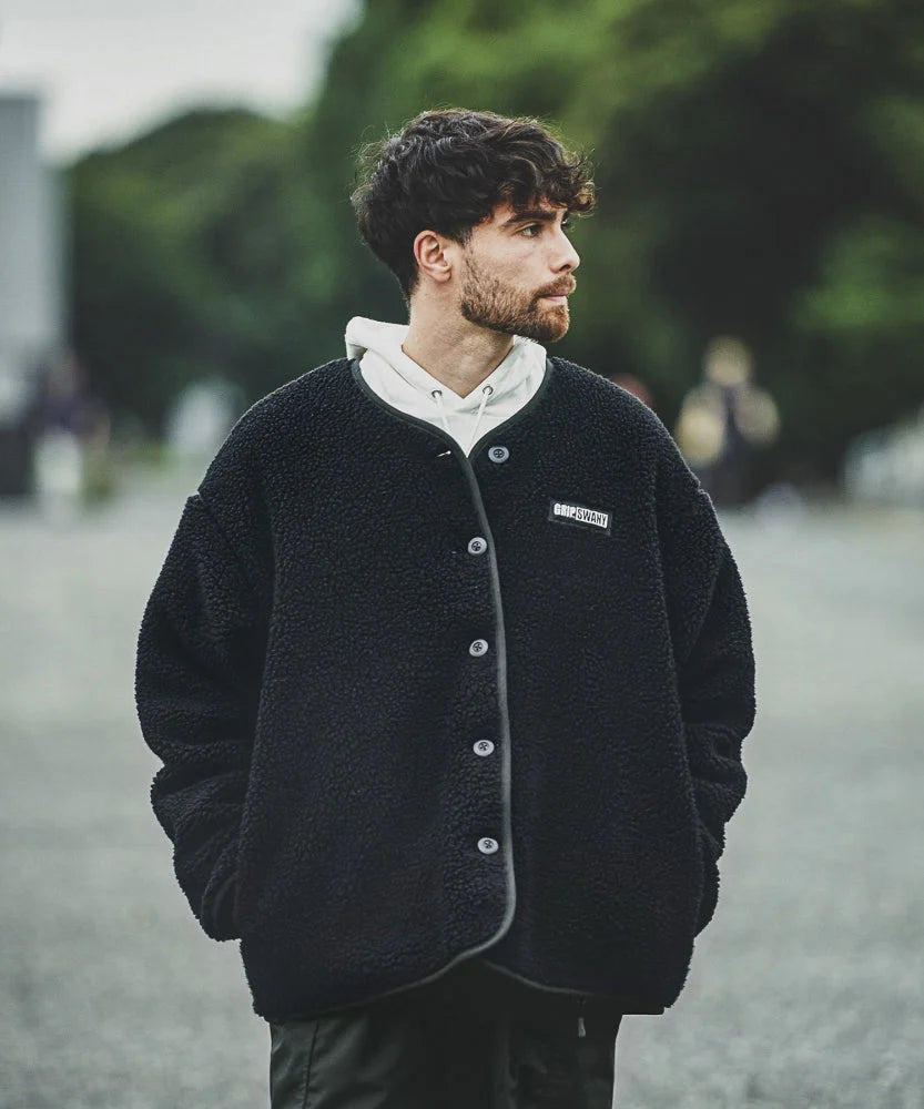 The GRIP SWANY × GORDON MILLER Reversible Quilt Jacket combines function, durability, and warmth in a bespoke design. Crafted with GRIP SWANY’s flame-retardant BRAZE SHIELD fabric, the outer layer is water-repellent and military-inspired, while the reversible side features cozy boa material. Ideal for camping, garagewear, or casual wear, this versatile jacket balances rugged utility and comfort in a stylish, oversized fit.