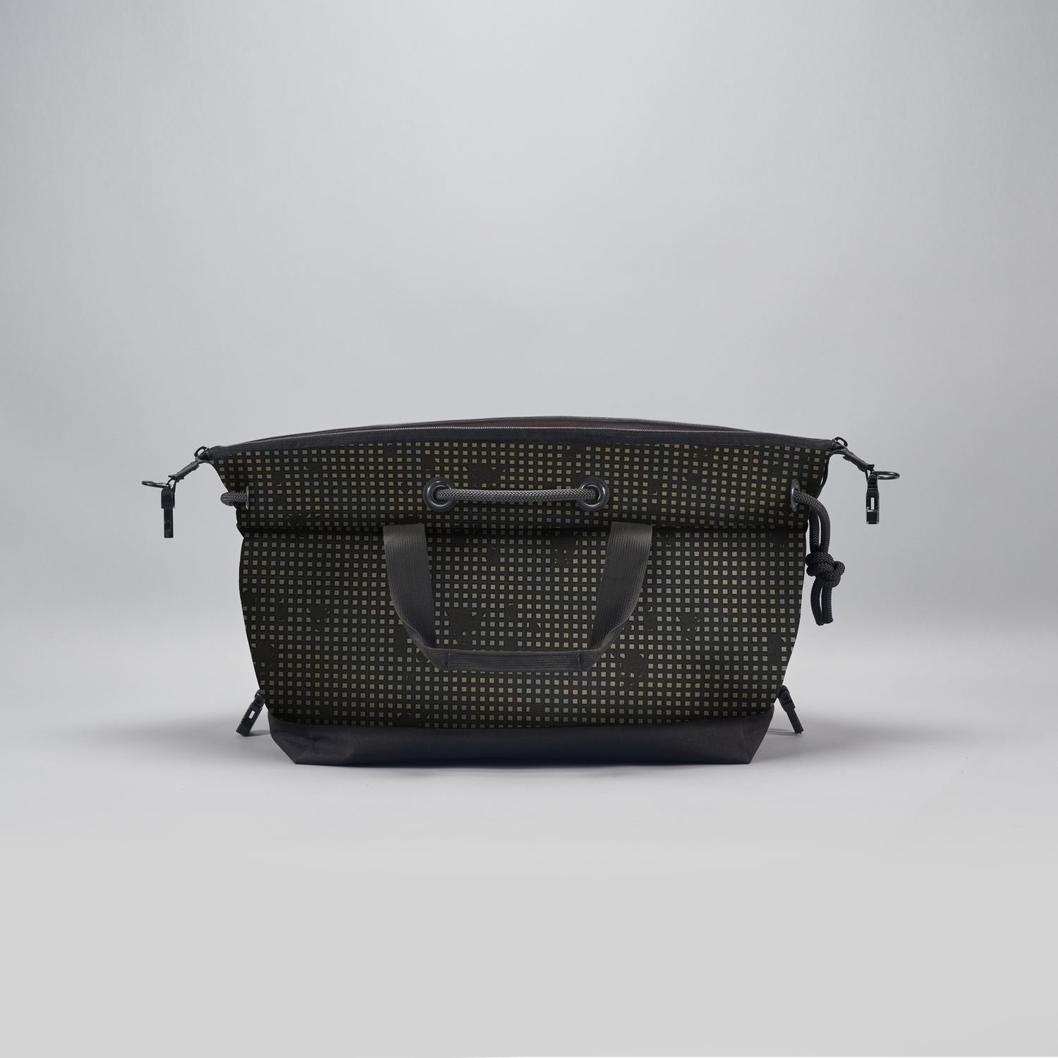 This hand-built duffel is designed for durability and versatility. Made from 1000D Cordura, it has various adaptable compression and expansion modes. The detachable EVA foam shoulder strap ensures comfortable carrying while D-ring attachment points make it compatible with a universal swivel strap. Inside, you'll find six flat pockets for efficient organization. This unique blend of materials and thoughtful design makes it perfect for urban adventures and travel. Available exclusively in-store.