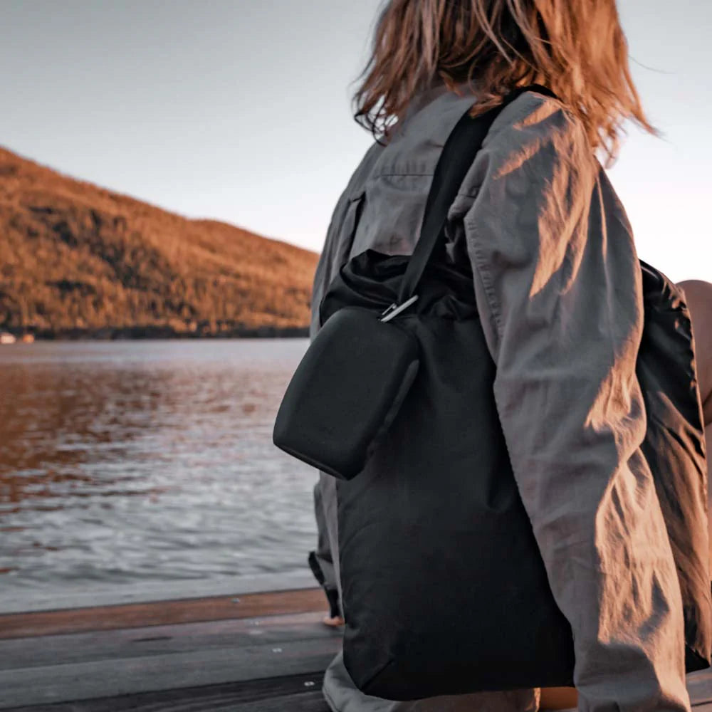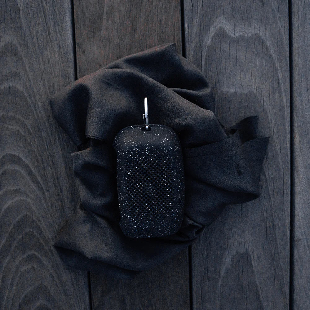 The NanoDry™ Packable Shower Towel is a full-size travel towel made from fast-drying nanofiber. It absorbs twice its weight in water and packs into a premium silicone case for travel.