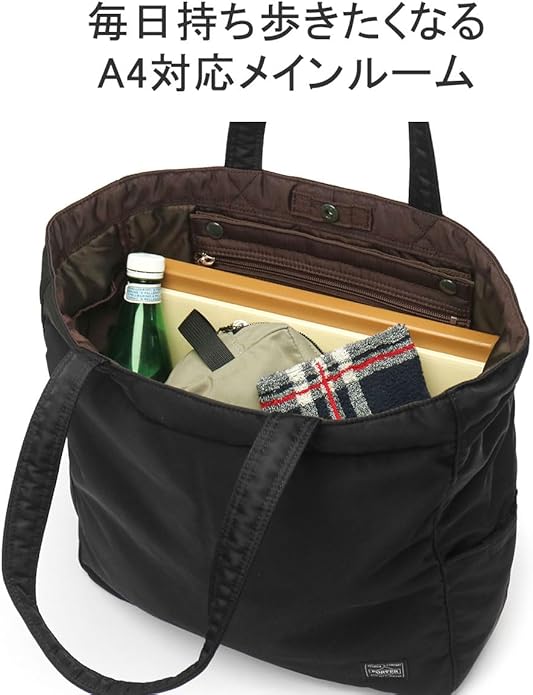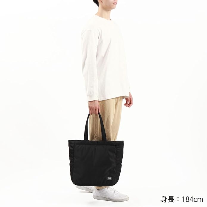 This Porter tote bag is a lightweight, durable, and stylish everyday carry option with spacious storage and smart organization. Made from nylon twill with cotton bonding, it features a removable zip pocket, multiple interior compartments, and two exterior Velcro pockets for quick access. Sturdy handles and a reinforced bottom plate ensure comfort and structure, making it perfect for work, travel, or daily use. Crafted in Japan, it blends functionality, durability, and timeless design.