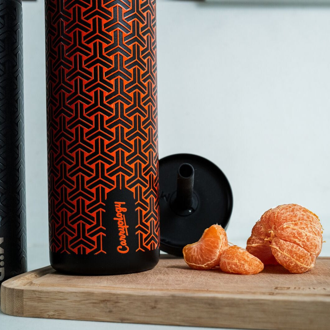 Introducing the MiiR x Carryology 16oz Sipper Straw Bottle in Orange, designed for the modern adventurer who values both form and function. This bottle features a custom Japanese-inspired Auxikko print for added grip and style. Its spill-proof design and flexible silicone straw ensure hydration is always easy and clean, no matter where life takes you. Crafted with premium 18/8 stainless steel and Thermo 3D® insulation, this bottle will keep your drinks cold for hours.