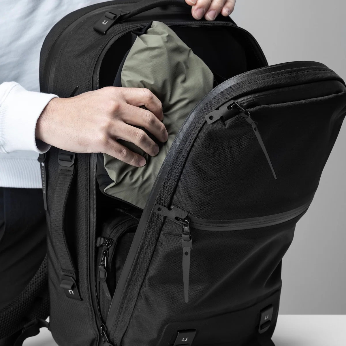 The CITADEL 25 combines innovative materials, thoughtful design, and exceptional durability for urban and travel use. Built with PFAS-free EmberTex™—a twisted nylon 6 with a matte, abrasion-resistant finish—it offers structure and weatherproofing enhanced by YKK Aquaguard zippers and laser-cut bonded Hypalon panels. Ergonomic 3D shoulder straps with EVA foam and a contoured back panel ensure all-day comfort. The pack features a quick-access pocket, magnetic tablet sleeve for 13” devices, and a padded, suspended laptop pocket for up to 16” laptops. Modular compression straps and a side handle allow versatile carry options. Precisely crafted with BOND-STITCH™ construction, the CITADEL 25 delivers sleek, minimalist utility with unmatched durability.
