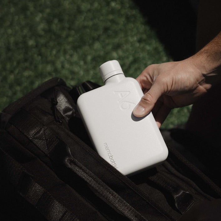 A6 メモボトル™ は、ハンドバッグ、クロスボディバッグ、バックパックなどに簡単に収まるので、毎日のお供に最適です。