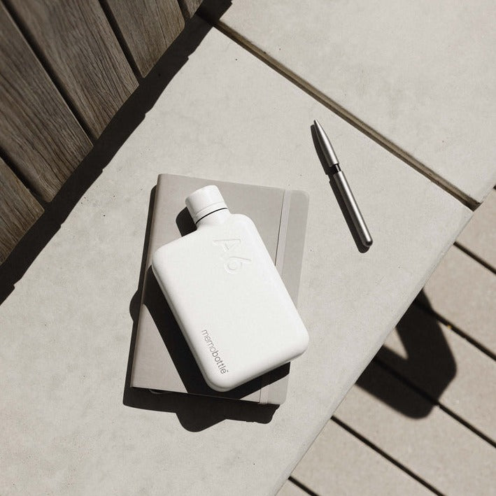 コンパクトなサイズと紙からヒントを得たデザインの A6 memobottle™ なら、どこにいても水分補給ができます。