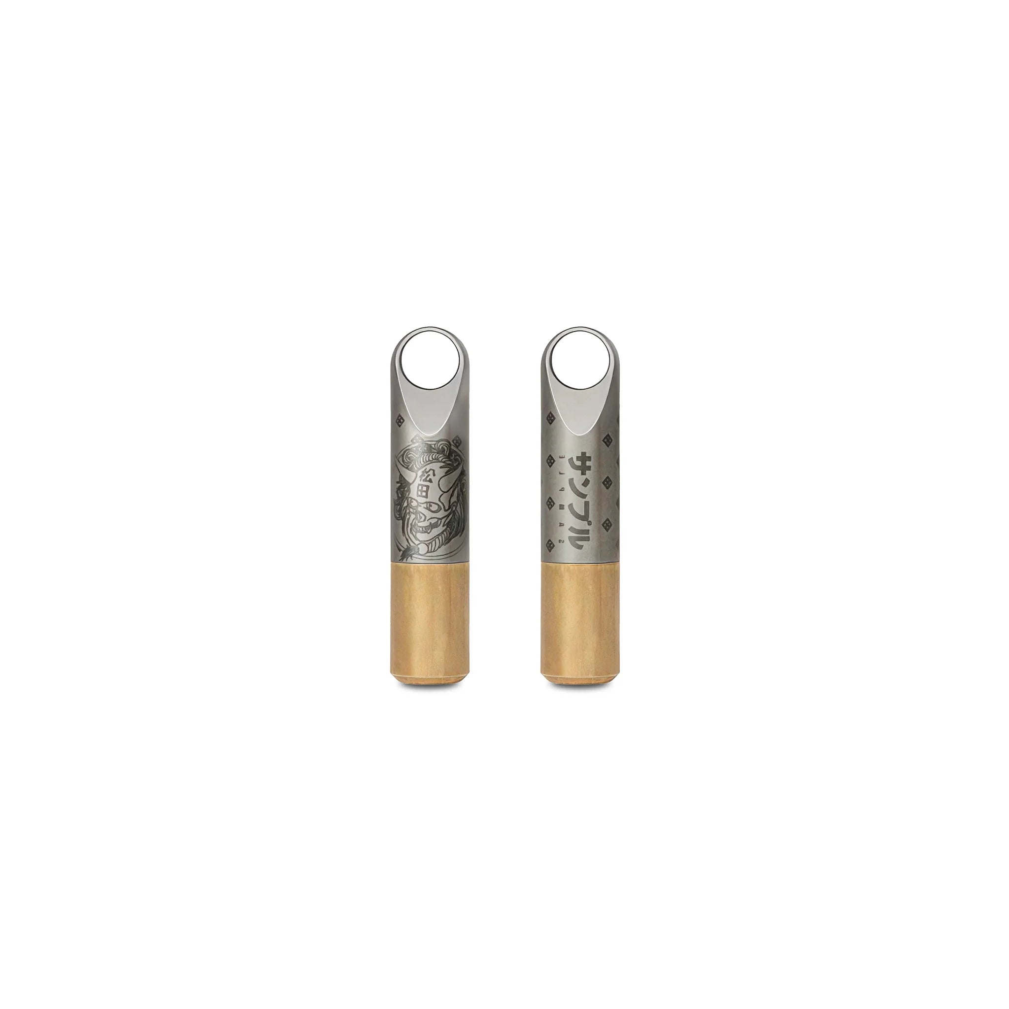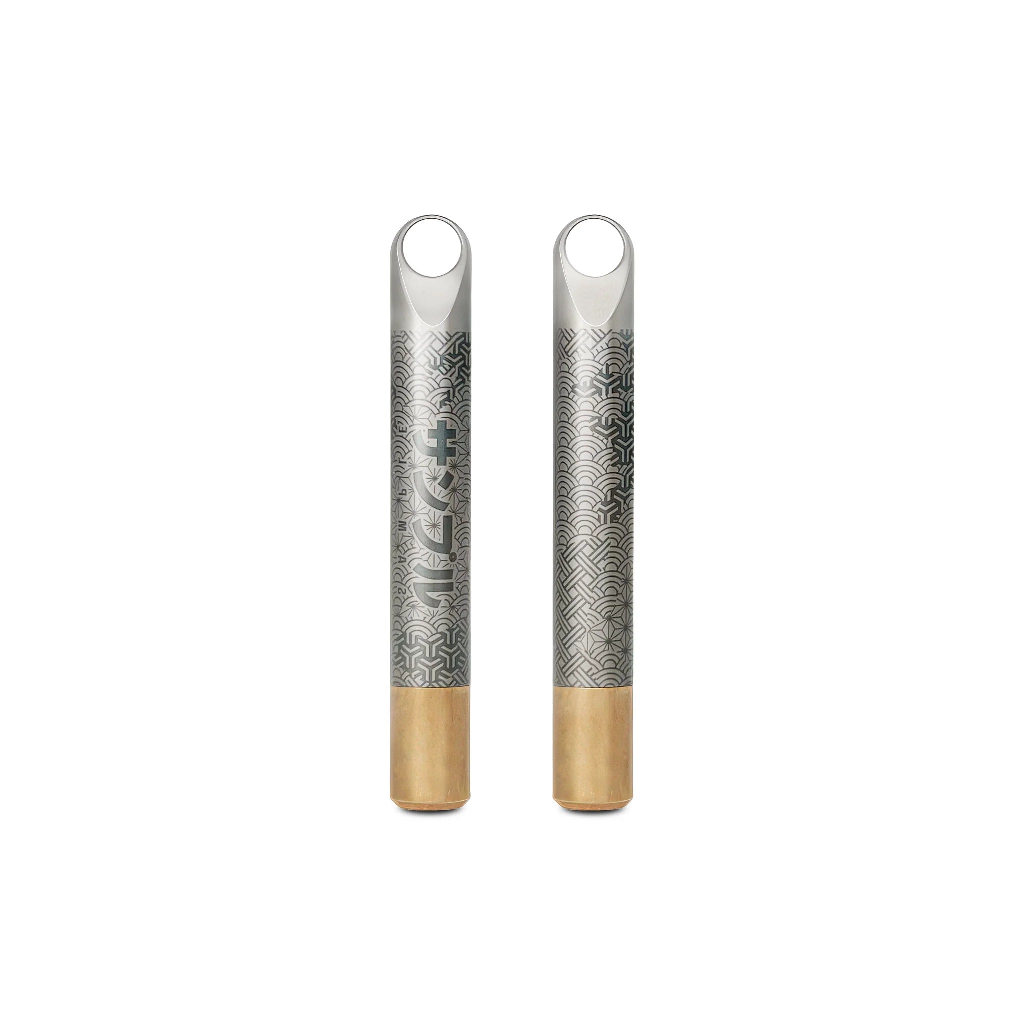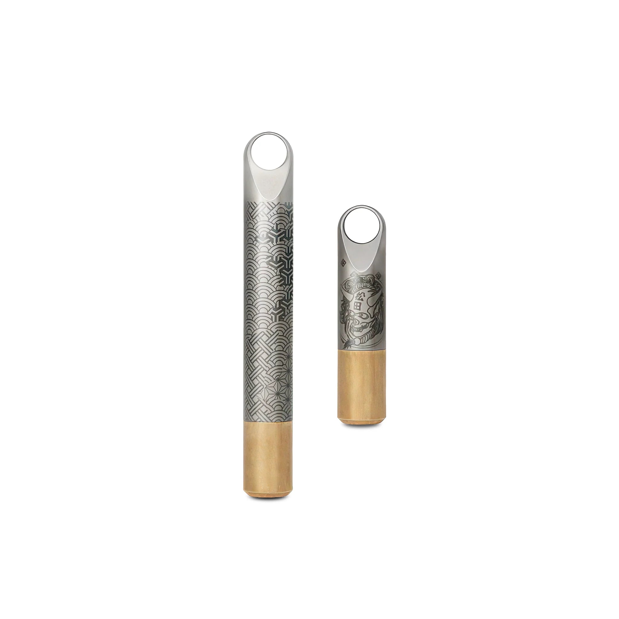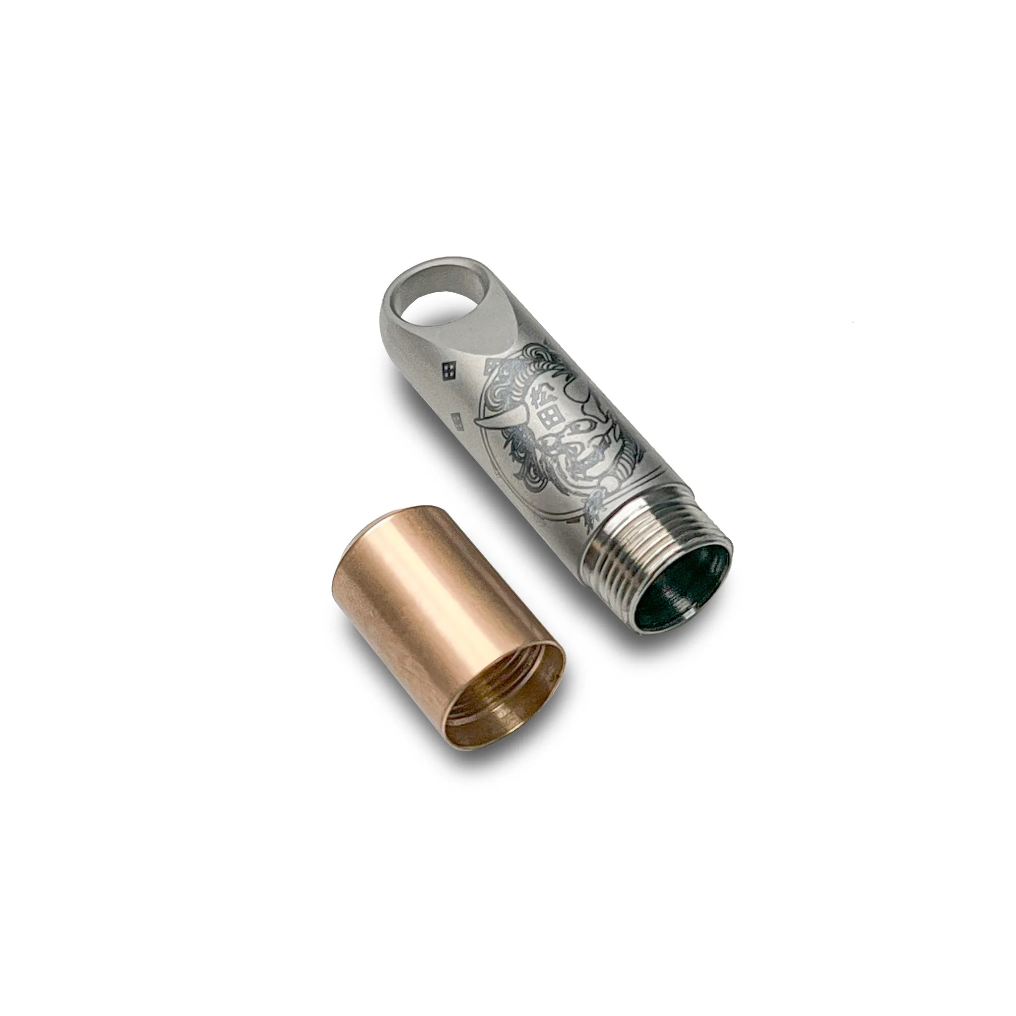 A custom laser engraved Slim memobottle in stainless steel—mecha design by Dan Matsuda.