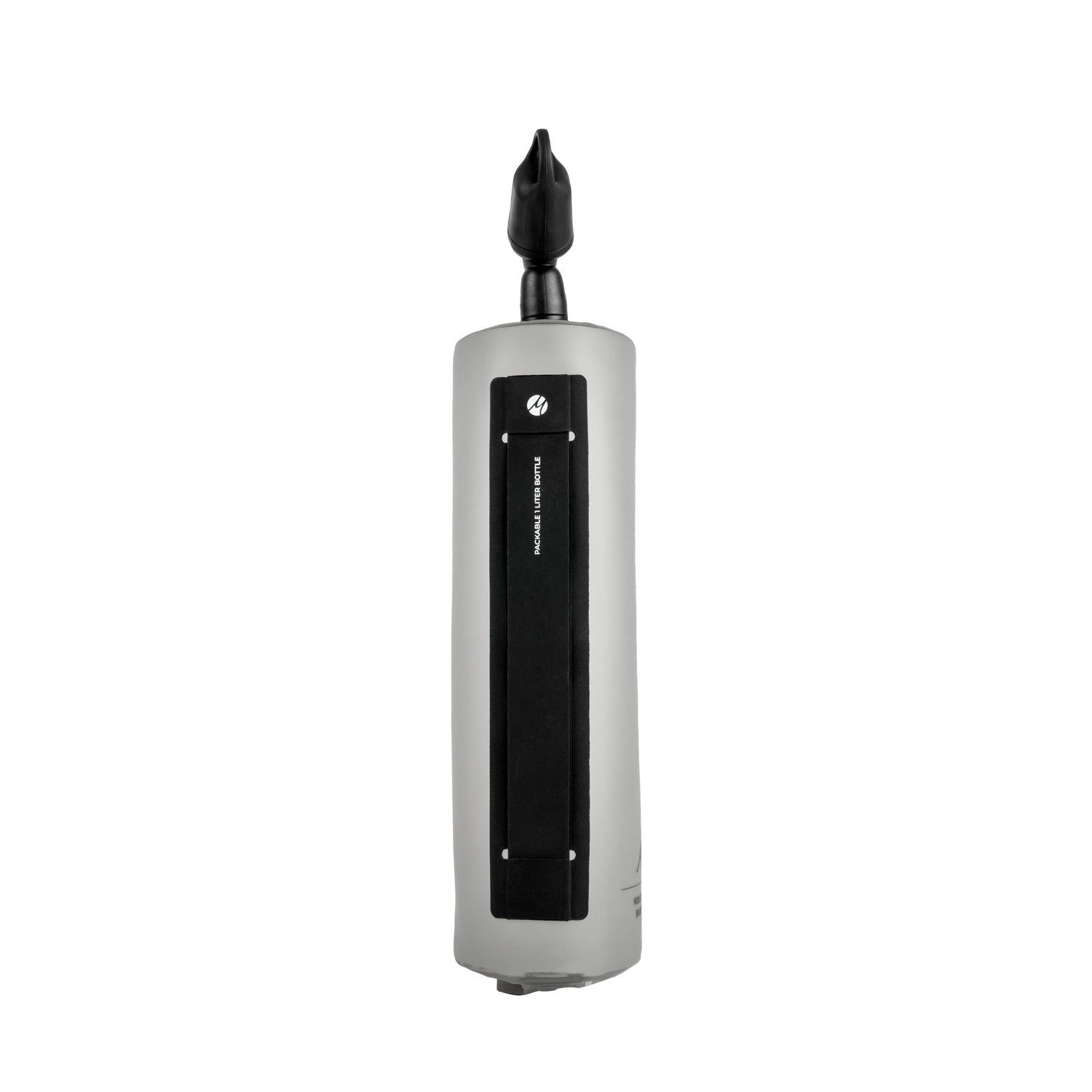 1リットルのパッカブルウォーターボトルは、空港から山まで、無駄なスペースをとらずに常にそばにいられるように設計されています。