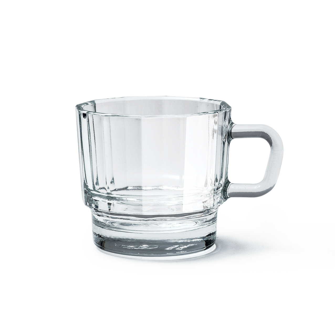 W ガラスは耐熱ハンドル、積み重ねやすいテーパー底、お手入れが簡単な滑らかな円形の内面を備えています。よりゆったりと優雅にコーヒーを味わい、循環型経済と環境への配慮の展望をお楽しみください。