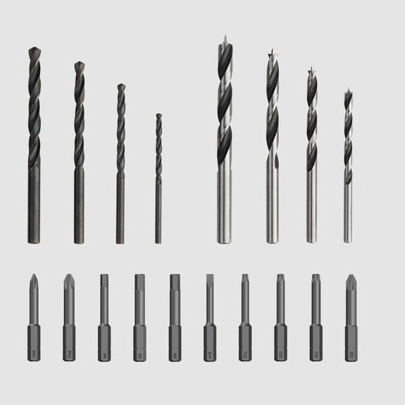- 金属加工ドリル 4 個と木工ドリル 4 個