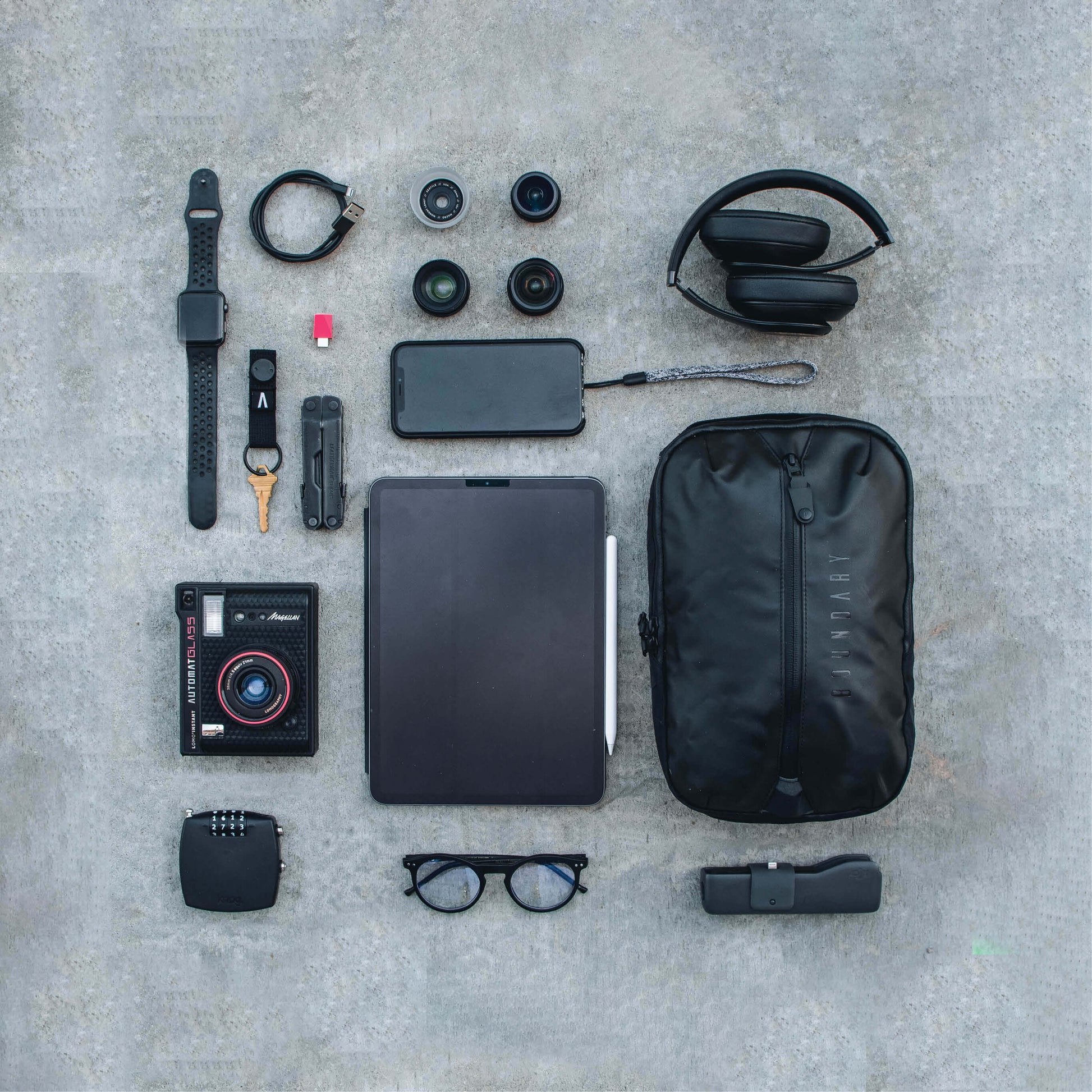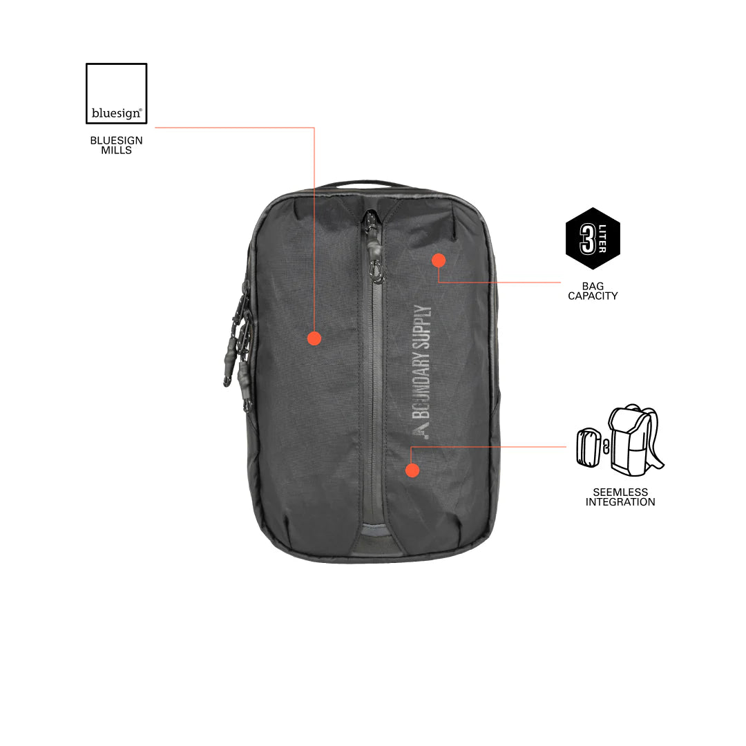 - Strong aluminum hardware connects to other Boundary bags