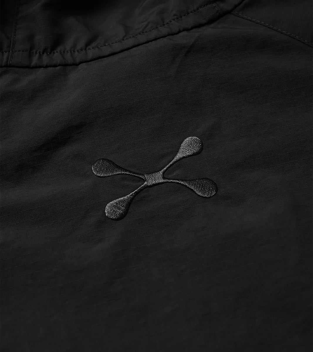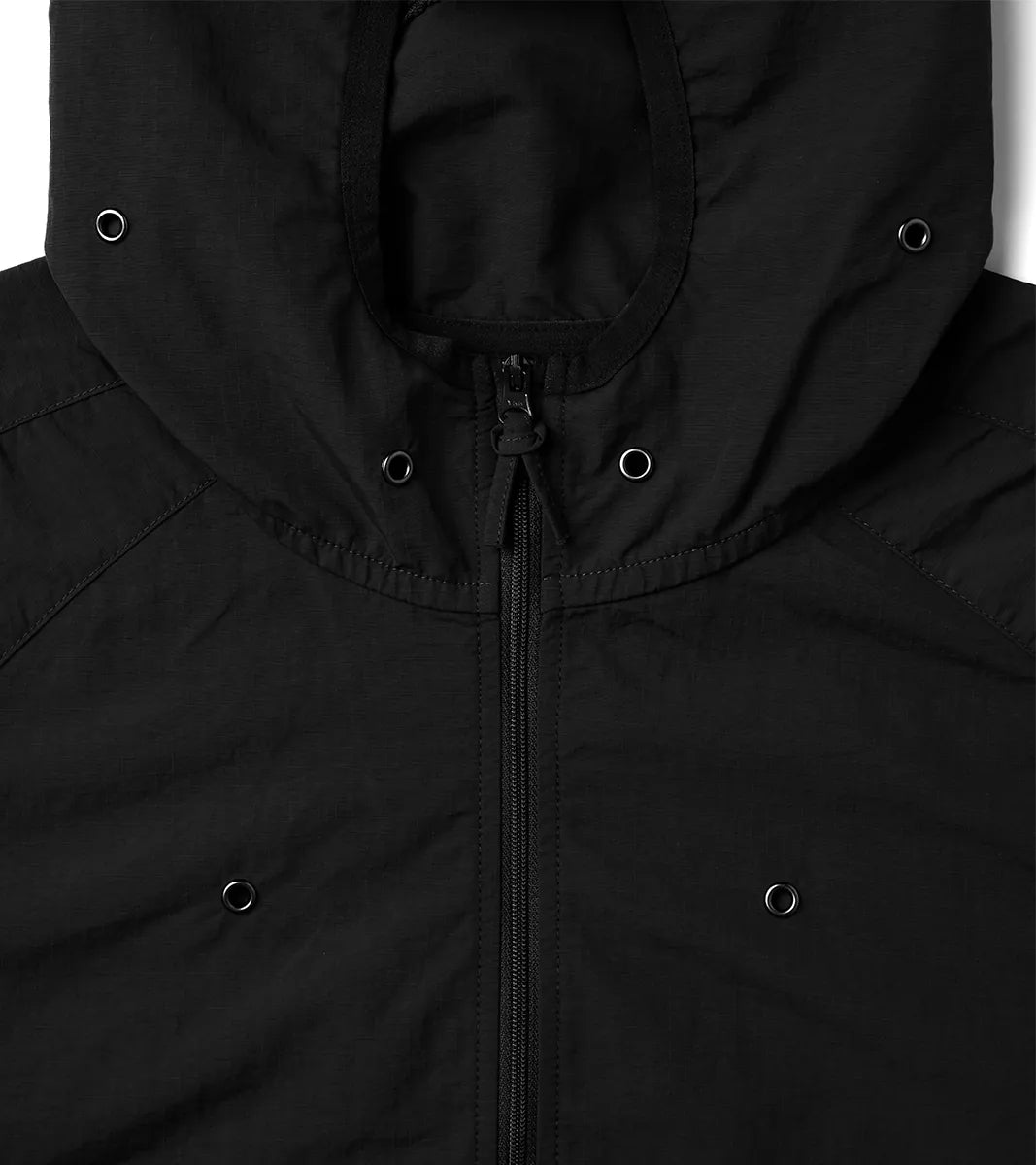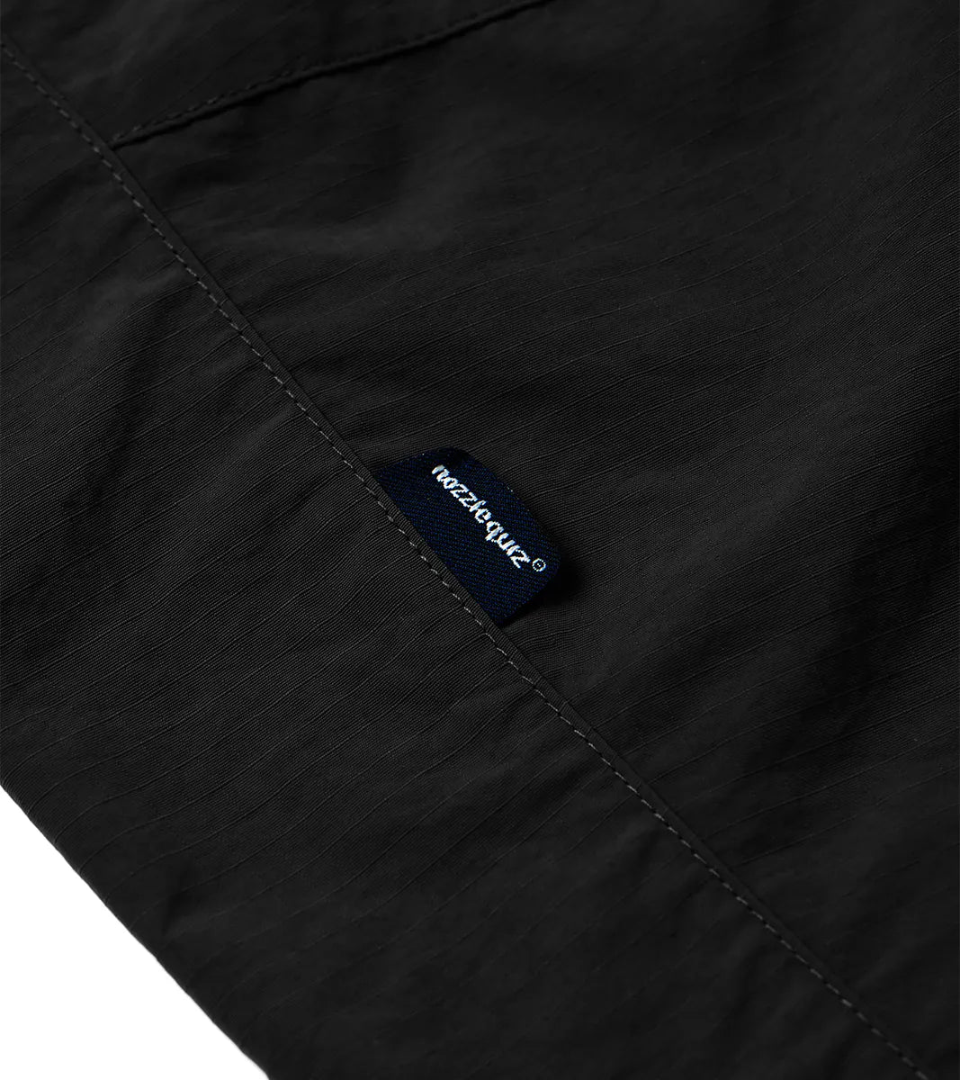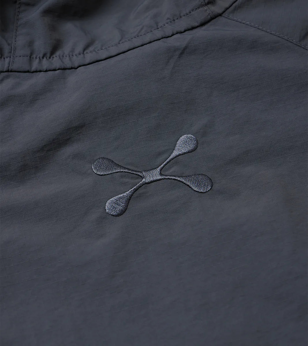 The Arc Windbreaker by Nozzle Quiz is a reimagined version of the typical training windbreaker. Featuring Nozzle Quiz's signature "Arc Curve" design language, the Arc Windbreaker's sweeping curved cut across the body breaks the stiffness often associated with traditional training gear. This style specifically uses 100% nylon ripstop fabric, offering just the right amount of of thickness along with a dry hand feel, making it the ideal lightweight outwear layer for those cooler days ahead.
