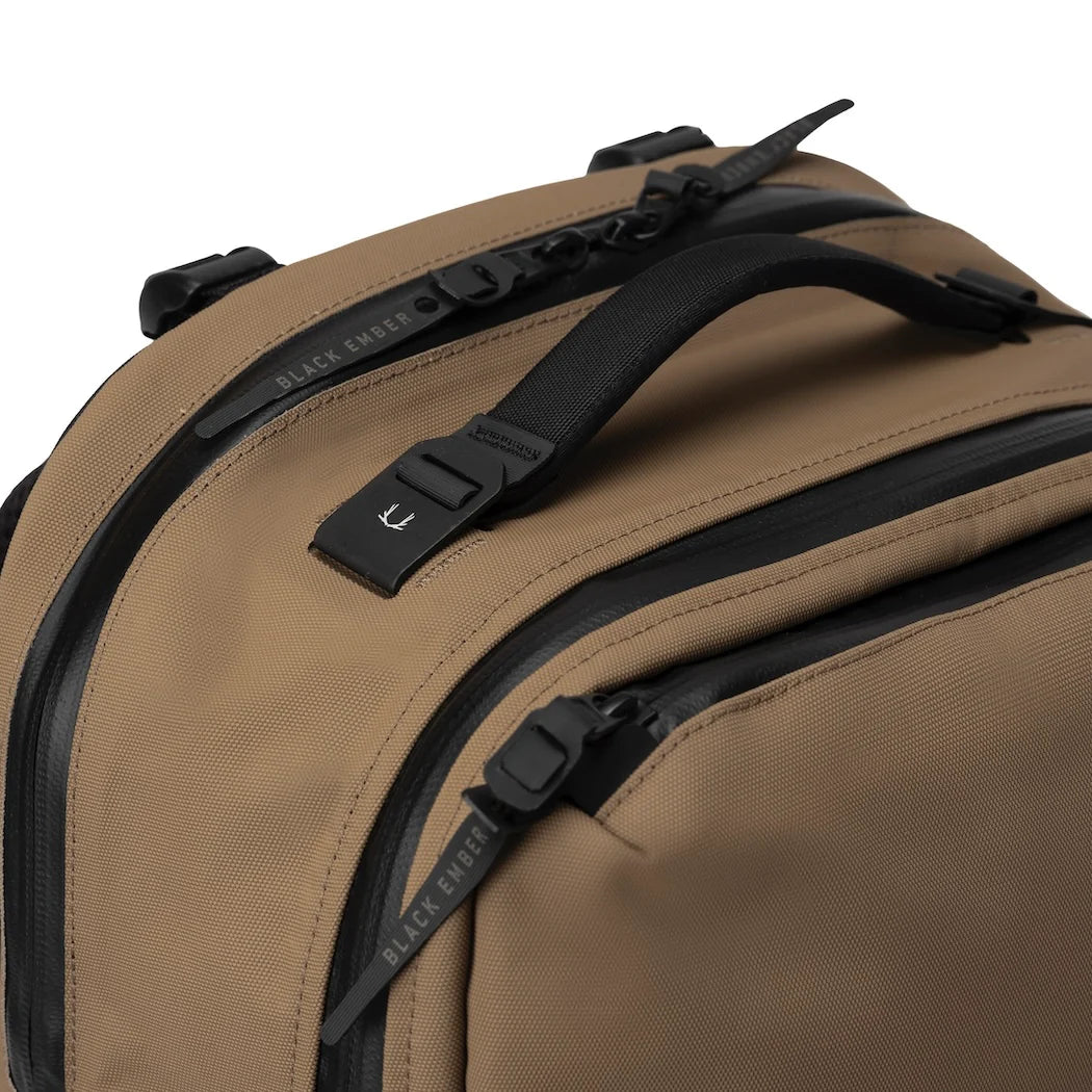 The CITADEL 25 combines innovative materials, thoughtful design, and exceptional durability for urban and travel use. Built with PFAS-free EmberTex™—a twisted nylon 6 with a matte, abrasion-resistant finish—it offers structure and weatherproofing enhanced by YKK Aquaguard zippers and laser-cut bonded Hypalon panels. Ergonomic 3D shoulder straps with EVA foam and a contoured back panel ensure all-day comfort. The pack features a quick-access pocket, magnetic tablet sleeve for 13” devices, and a padded, suspended laptop pocket for up to 16” laptops. Modular compression straps and a side handle allow versatile carry options. Precisely crafted with BOND-STITCH™ construction, the CITADEL 25 delivers sleek, minimalist utility with unmatched durability.